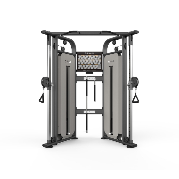 舒华可调式双滑轮多功能训练器SH-G6820锻炼部位是多肌群训练(胸、肩、背、腿、腹)。